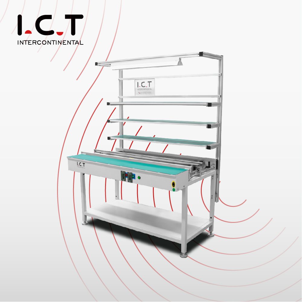 ICT بیش از ده نوع نوار نقاله را ارائه می دهد، بنابراین هر کارخانه به خوبی کار می کند. نوار نقاله های استاندارد به سادگی تخته ها را انتقال می دهند. ایستگاه های بازرسی چراغ های روشن اضافه می کنند. واحدهای تلسکوپی و ردکننده با طرحبندیهای خاص مطابقت دارند. نوار نقاله آب بندی PCB پیشرفته SMT با پوشش دستی، پوشش بالابر خودکار، نسخه تک یا دو لاین، به علاوه دوش هوا یا یونیزر اختیاری برای محیط های فوق العاده تمیز ارائه می شود. مدل های زنجیره ای سنگین و بافر نیز موجود است. هر خط مونتاژ PCB نوار نقاله را می توان از نظر طول، ارتفاع، نوع پوشش و عملکردهای هوشمند کاملاً سفارشی کرد تا دقیقاً با نیازهای تمیزی شما مطابقت داشته باشد.