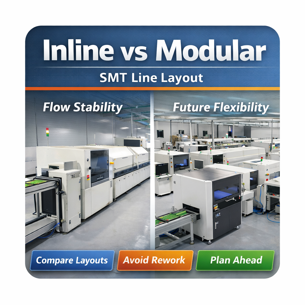 بنابراین، انتخاب بین طرحبندی خط SMT درون خطی و مدولار، مسئله کارایی فضای کف نیست. این یک استراتژی تولید بلندمدت است که مستقیماً بر پایداری جریان مواد، انعطاف پذیری تغییر، انعطاف پذیری سیستم و هزینه واقعی توسعه آینده تأثیر می گذارد.